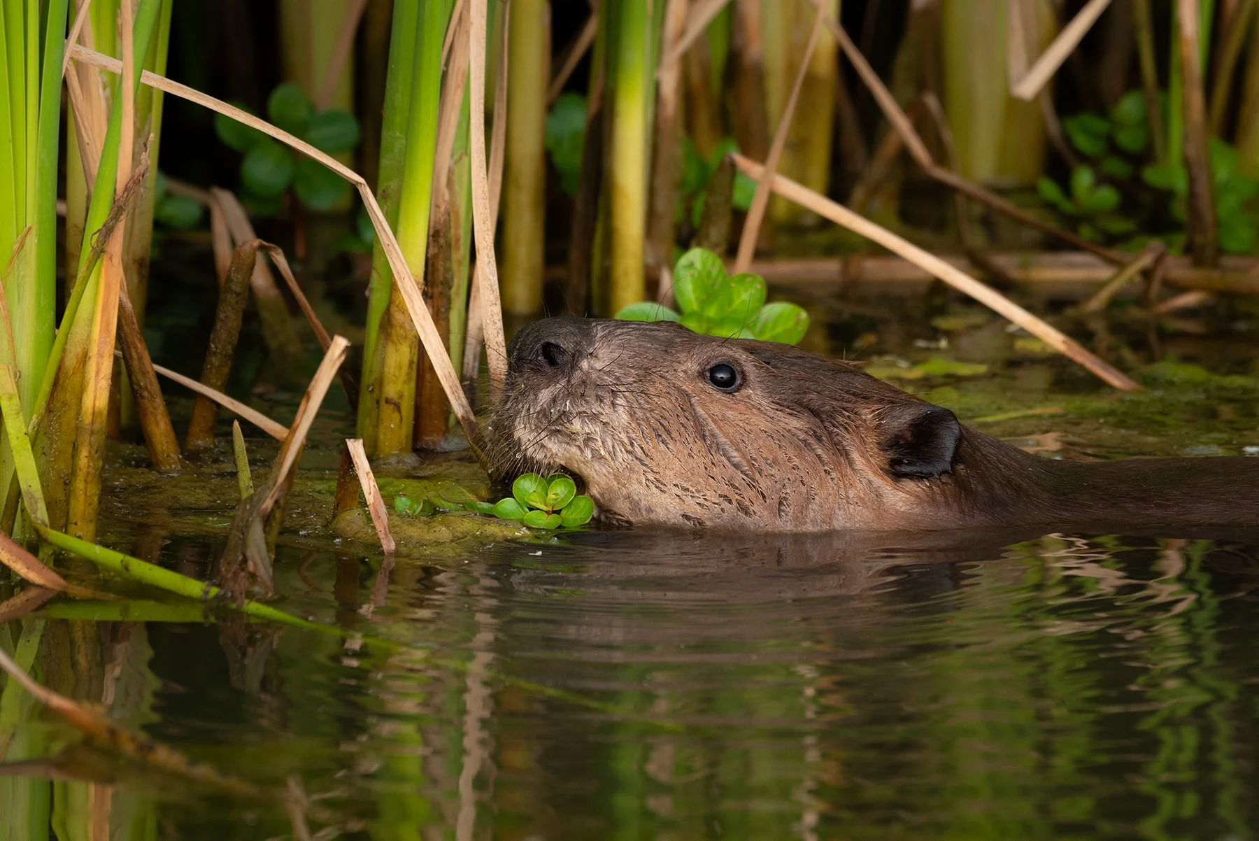 I have subsequently returned to this area a number of times, and had the pleasure of enjoying the company of this industrious creature spending his time unperturbed, wild and free. As I began visiting the area more often, the beaver became more accustomed to my presence, which in turn allowed me to get some very intimate images of this highly intelligent animal spending its time foraging in its wetland home.